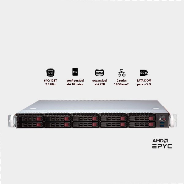Processador AMD EPYC™ de 2ª ou 3ª geração,  16, 32, 64 cores (núcleos fisicos)